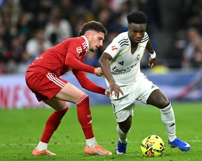 在兩支球隊(duì)最近的3次直接對(duì)話中,全部都是皇馬笑到了最后,為了能夠在主場(chǎng)延續(xù)強(qiáng)勢(shì)的發(fā)揮,阿隆索也是全主力出戰(zhàn),在433的陣型中,讓庫(kù)爾圖瓦鎮(zhèn)守龍門,F(xiàn)加西亞、赫伊森、呂迪格和勞爾阿森西奧構(gòu)筑后防,貝林厄姆、瓊阿梅尼和居萊爾坐鎮(zhèn)中場(chǎng),維尼修斯、姆巴佩和羅德里戈組成進(jìn)攻三叉戟。